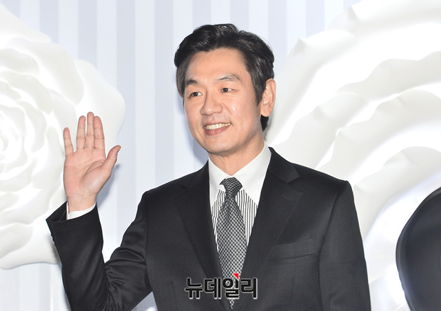 배우 김태우가 26일 오후 서울 중구 서울신라호텔 다이너스티홀에서 열린 팩토리얼 신제품 '이지케이7' 론칭 기념 행사에서 포토타임을 갖고 있다.