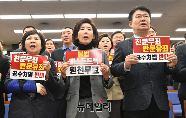 [포토] 패스트트랙 원천무효·공수처법 반대 외치는 자유한국당