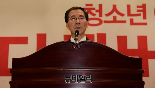 이재규 전 한국마약퇴치운동본부 대구본부장이 27일 오후 국회 의원회관에서 열린 한국가족보건협회, 윤종필 자유한국당 의원 주관 세계 에이즈의 날 기념 세미나 '디셈버퍼스트'에 참석해 개회사를 하고 있다.