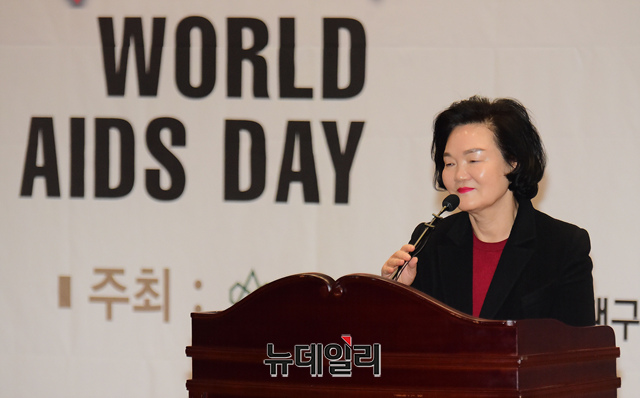 윤종필 자유한국당 의원이 27일 오후 국회 의원회관에서 열린 한국가족보건협회 주관 세계 에이즈의 날 기념 세미나 '디셈버퍼스트'에 참석해 격려사를 하고 있다.