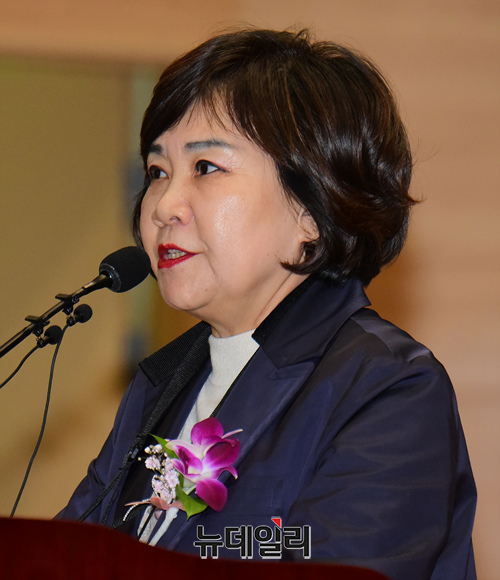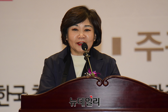 김순례 자유한국당 의원이 27일 오후 국회 의원회관에서 열린 한국가족보건협회 주관 세계 에이즈의 날 기념 세미나 '디셈버퍼스트'에 참석해 축사를 하고 있다.