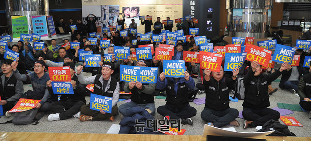 [포토] KBS에 울려퍼진 '양승동 OUT'
