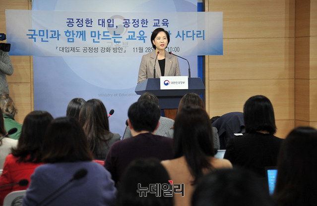 유 장관은 "서울 소재 16개 대학을 대상으로 23학년도까지 수능위주전형을 40% 이상으로 유도하겠다"며 "정규교육과정 외 모든 비교과 활동과 자기소개서의 대입 반영을 폐지하겠다"고 말했다.