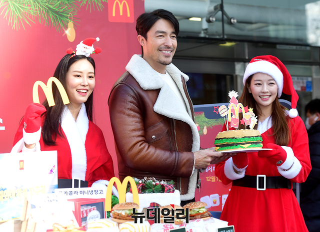 생일을 맞은 다니엘 헤니가 28일 서울 강남구 맥도날드 청담DT점에서 열린 '25일 간의 크리스마스' 캠페인 행사에서 햄버거 모양의 생일 케이크를 선물받고 있다. 다니엘 헤니는 맥도날드 시그니처 버거 모델로 활동하고 있다.'25일 간의 크리스마스'는 12월 1일부터 25일까지 맥도날드 매장을 찾는 고객 누구나 행복한 크리스마스 기분을 느낄 수 있도록 매일 크리스마스 쿠폰과 다양한 선물 당첨 기회를 제공하는 이벤트다.매장에 부착된 QR코드를 스캔하면 하와이 왕복 항공권, 에어팟, 아이패드, 노트북 등 다양한 선물 증정 이벤트에 참여할 수 있다.