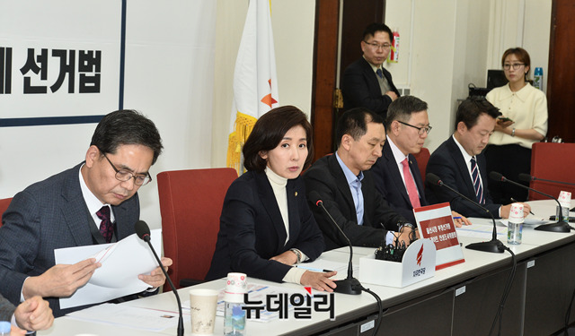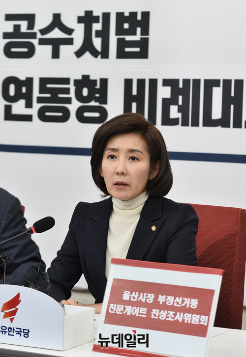 나경원 자유한국당 원내대표가 28일 오후 국회에서 열린 '울산시장 부정선거 등 친문게이트 진상조사위원회' 1차 회의에서 모두발언을 하고 있다.