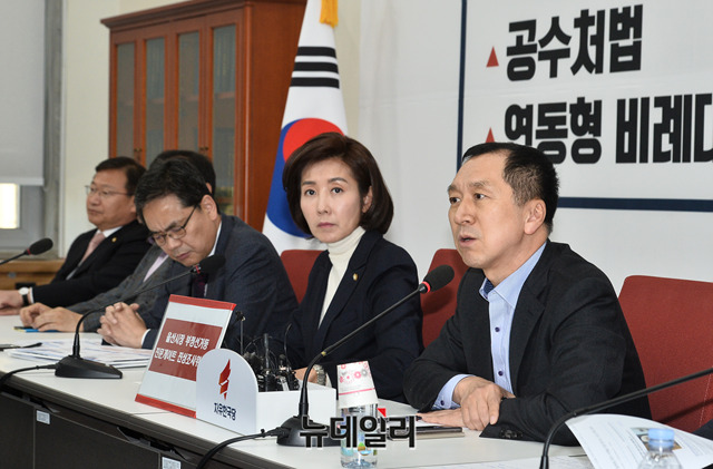 김기현 전 울산시장이 28일 오후 국회에서 열린 자유한국당 '울산시장 부정선거 등 친문게이트 진상조사위원회' 1차 회의에서 발언을 하고 있다.