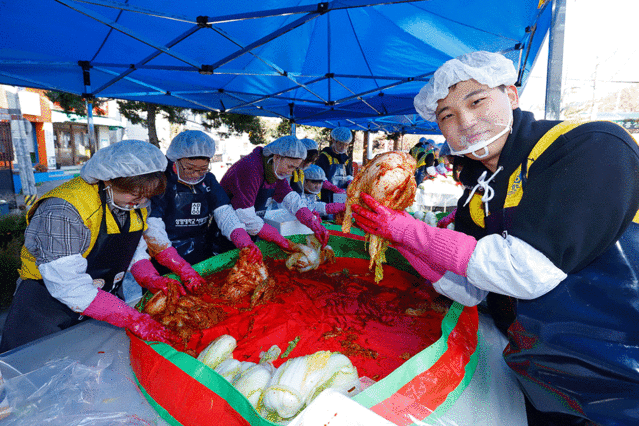 상명대학교(총장 백웅기) 사회봉사단은 28일 서울 종로구 부암동 주민센터 앞마당에서 '사랑의 김장 나눔 봉사활동'을 진행했다.사회봉사단 학생들은 백웅기 총장, 강상욱 학생경력개발처장과 함께 직접 절인 배추를 준비해 속을 넣고 포장하는 등 김장 전 과정에 참여했다. 김장 후에는 지역 내 어르신들에게 직접 담근 김치와 점심을 대접했다.백 총장은 “학생들이 어르신들의 겨울나기에 조금이나마 도움을 드리고자 김장 나눔 봉사활동을 벌였다”며 “앞으로도 지역사회를 위해 다양한 활동을 펼치는 상명대가 되겠다”고 말했다.한편 상명대 사회봉사단은 매년 김장을 준비해 후원품과 함께 부암동 일대 소외계층에게 전달하고 있다.
