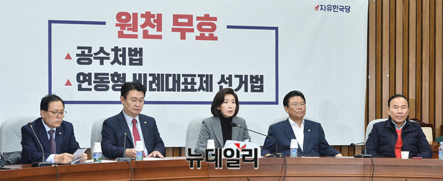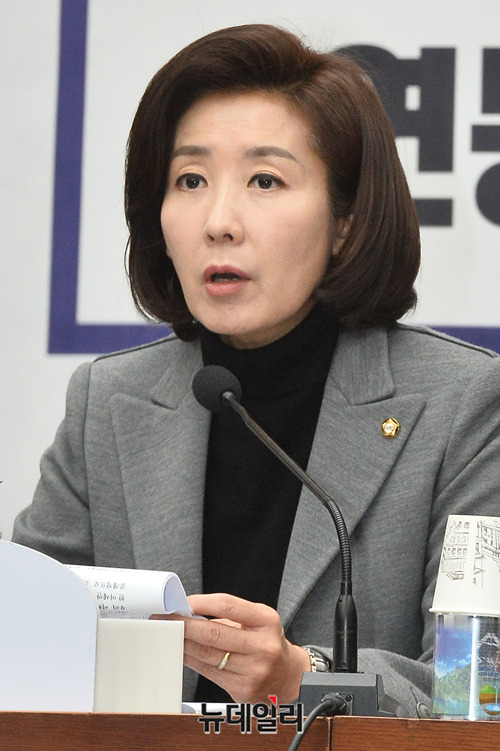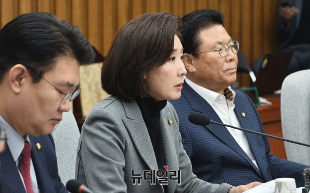나경원 자유한국당 원내대표가 29일 오전 국회에서 열린 원내대책회의에서 모두발언을 하고 있다.