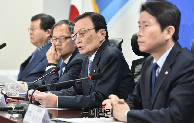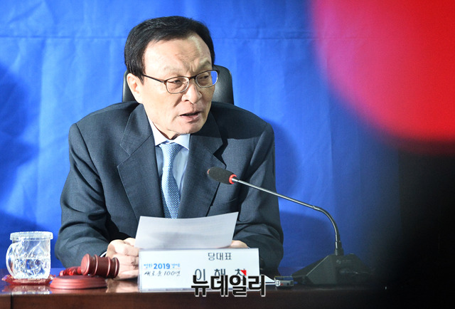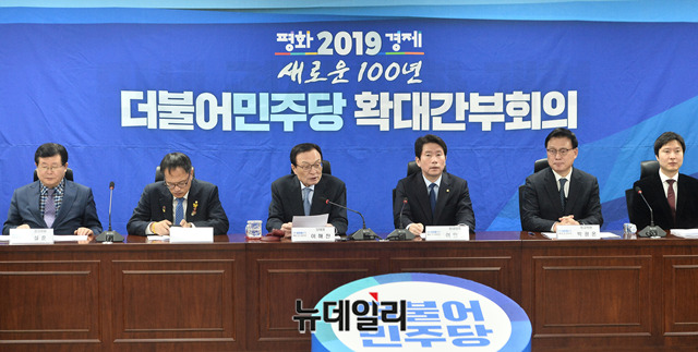 이해찬 더불어민주당 대표가 29일 오전 국회에서 열린 확대간부회의에서 모두발언을 하고 있다.