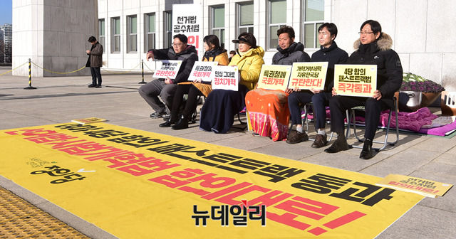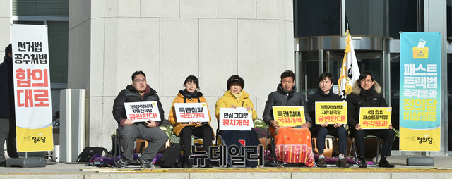 [포토] 패스트트랙법 통과 요구하며 농성하는 정의당