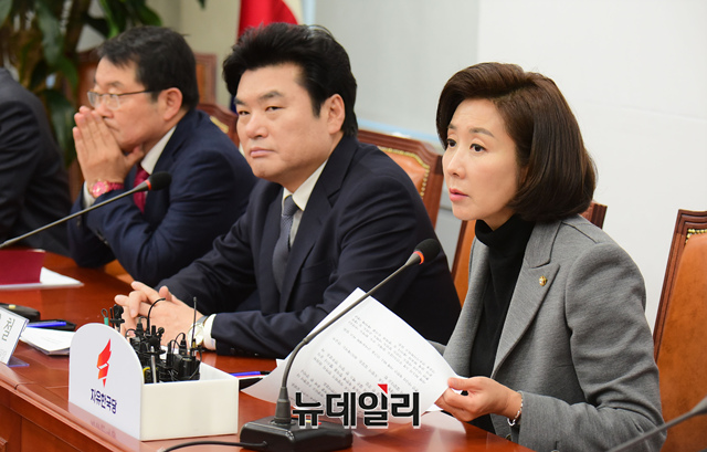 나경원 자유한국당 원내대표가 29일 오전 국회에서 열린 북핵외교안보특위·안보위 연석회의에 참석해 모두발언을 하고 있다.
