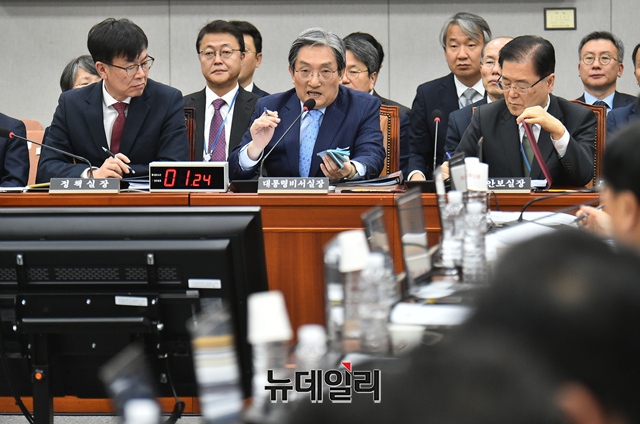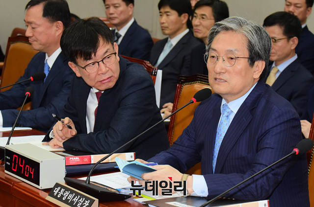 노영민 대통령 비서실장이 29일 오전 국회에서 열린 운영위 전체회의에 출석해 의원들 질문에 답하고 있다.