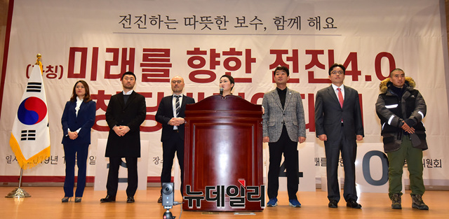 이언주 무소속 의원을 비롯한 창당 발기인들이 1일 오후 국회의원회관 대강당에서 열린 '미래를 향한 전진 4.0(가칭)' 창당 발기인 대회에서 인사말을 하고 있다.