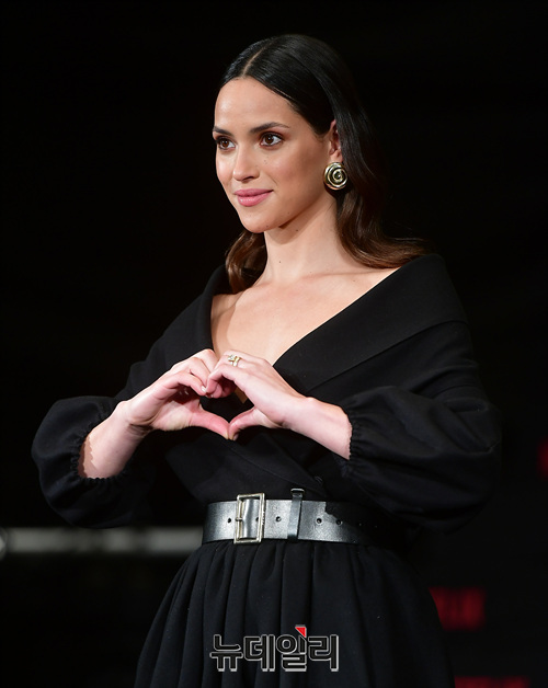 헐리우드 배우 '아드리아 아르호나'가 2일 오전 서울 종로구 포시즌호텔에서 열린 넷플릭스 영화 '6언더그라운드(감독 마이클 베이)' 프레스 컨퍼런스에서 포토타임을 갖고 있다. 영화는 13일 넷플릭스에서 공개된다.