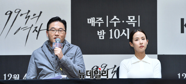 연출을 맡은 김영조 감독이 3일 오후 서울 구로구 라마다 서울신도림에서 열린 KBS2 수목드라마 '99억의 여자' 제작발표회에서 드라마 소개를 하고 있다.