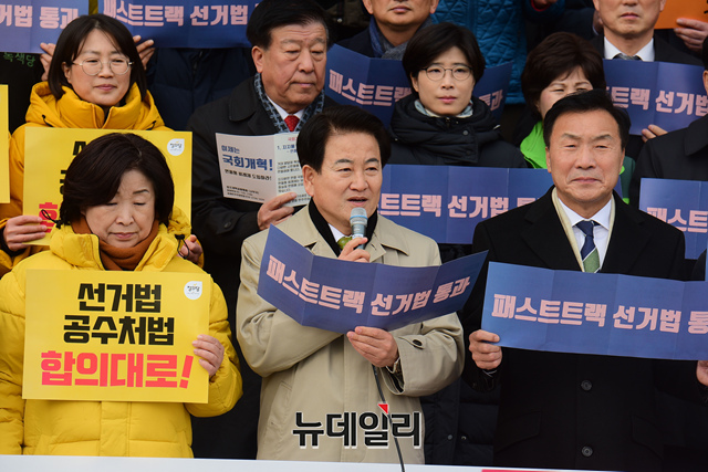 [포토] 선거제도 개혁 완수 결의 기자회견, 발언하는 정동영