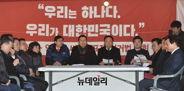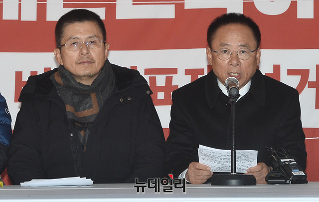 이주영 자유한국당 의원이 4일 오전 청와대 사랑채 앞 황교안 대표 천막 집무실에서 열린 당 대표 및 최고위원·중진의원 연석회의에서 모두발언을 하고 있다.