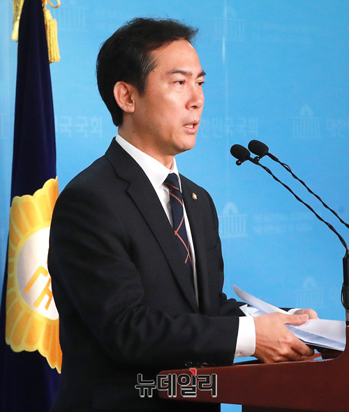 김영우 자유한국당 의원이 4일 오전 국회 정론관에서 21대 총선 불출마를 선언을 하고 있다.