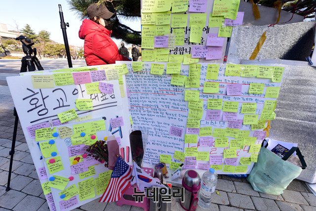김현진 청년화랑대표가 4일 오전 청와대 사랑채 앞에서 8일째 단식농성을 이어가고 있다.
