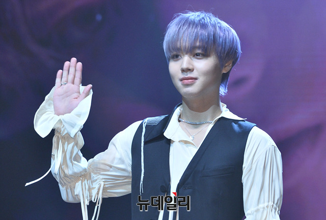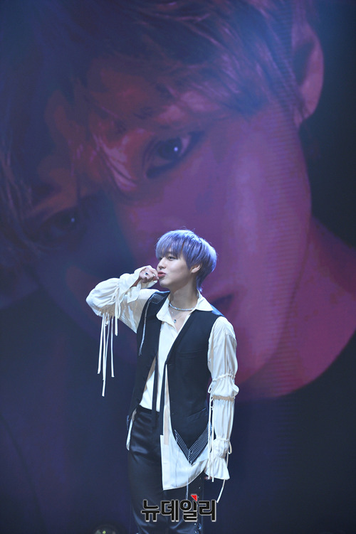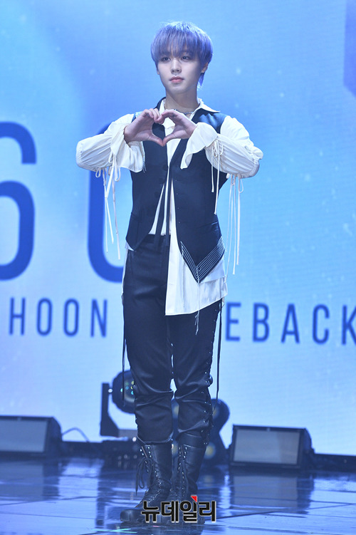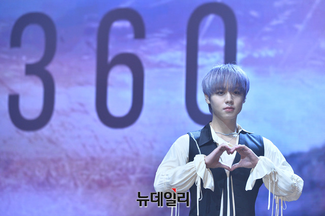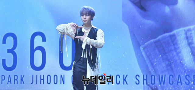 워너원 출신 가수 박지훈이 4일 오후 서울 서대문구 연세대학교 백주년기념관에서 열린 두 번째 미니앨범 '360' 쇼케이스에서 포토타임을 갖고 있다.
