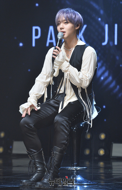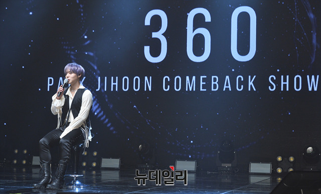 워너원 출신 가수 박지훈이 4일 오후 서울 서대문구 연세대학교 백주년기념관에서 열린 두 번째 미니앨범 '360' 쇼케이스에서 수록곡 소개를 하고 있다.