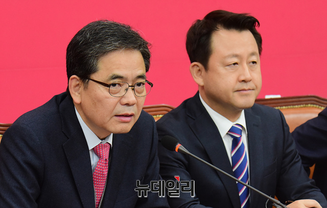 곽상도 자유한국당 친문게이트 진상조사위원장이 5일 오전 국회에서 열린 울산시장 부정선거 등 친문게이트 진상조사위원회 회의에서 모두발언을 하고 있다.