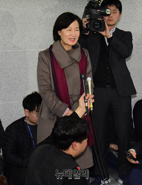 신임 법무부 장관으로 내정된 추미애 더불어민주당 의원이 5일 국회 오후 의원회관에서 소감을 발표하고 있다.