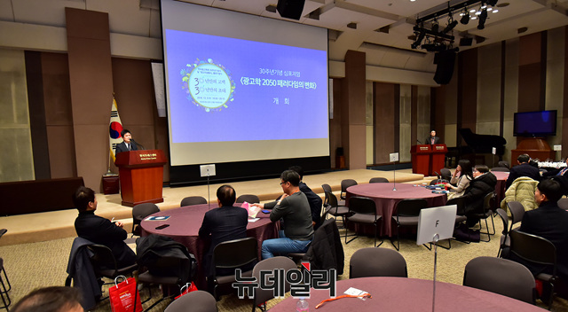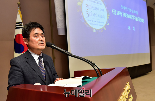 김병희 한국광고학회 회장이 5일 오후 서울 중구 한국프레스센터에서 열린 '한국광고학회 30주년 기념식'에서 인사말을 하고 있다.