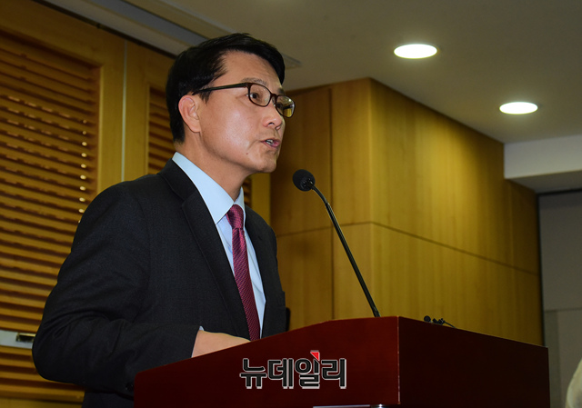 윤상현 자유한국당 의원이 5일 오후 국회 의원회관에서 원내대표 출마 선언을 하고 있다.