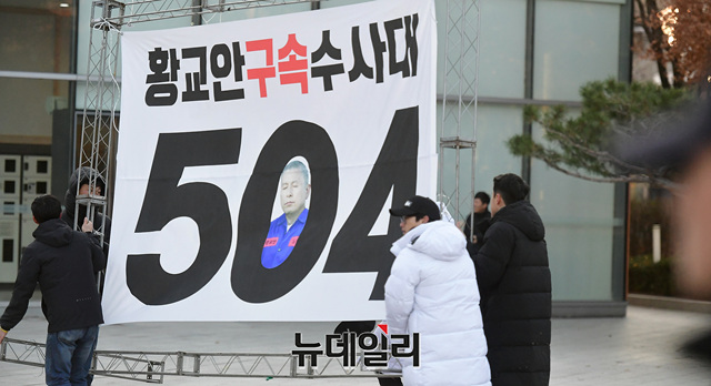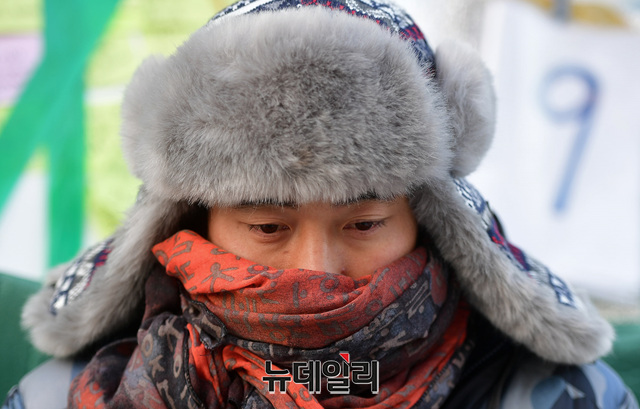[포토] 단식 9일 맞은 김현진 청년화랑 대표...인근엔 '황교안 구속' 맞불 농성