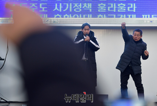 "문재인 퇴진" 효자동 철야농성 65일째… 애국시민 300명 '청와대 광야교회'서 밤샘 기도