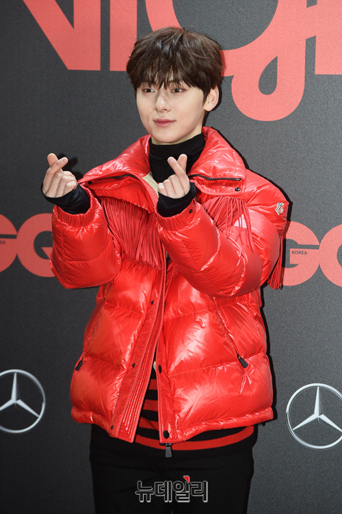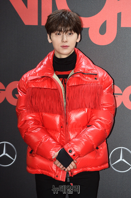 뉴이스트 황민현이 5일 오후 서울 중구 남산 제이그랜하우스에서 열린 '2019 지큐 나이트(2019 GQ NIGHT)'에서 포토타임을 갖고 있다.