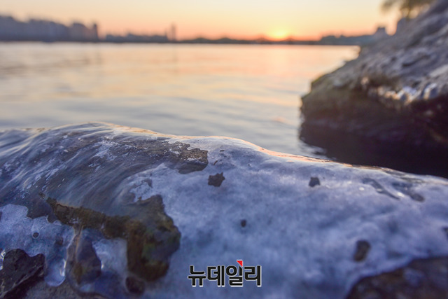 일년 중 눈이 가장 많이 내린다는 절기인 '대설(大雪)'을 앞둔 6일 오전 서울 여의도 한강공원에 가장자리에 고드름이 얼어있다. 이날 서울 아침 최저기온은 영하 11도까지 떨어졌다.