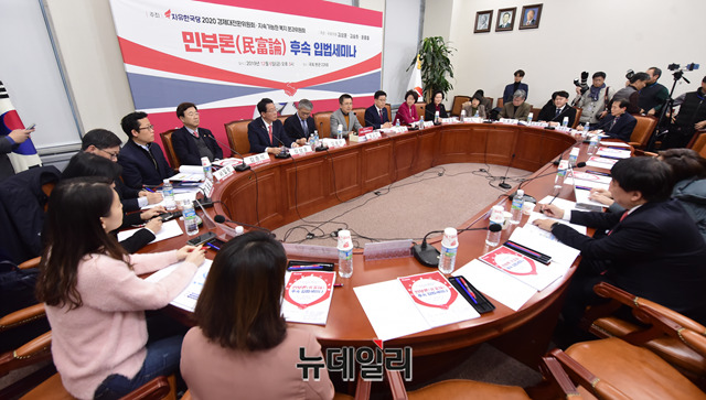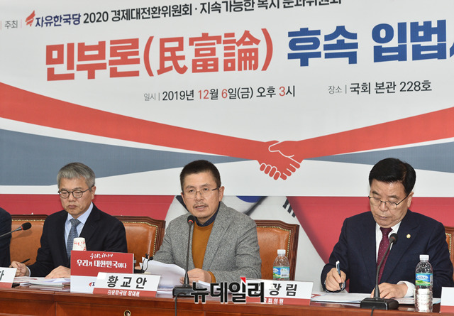 황교안 자유한국당 대표가 6일 오후 국회에서 열린 '민부론 후속 입법 세미나'에서 발언을 하고 있다.