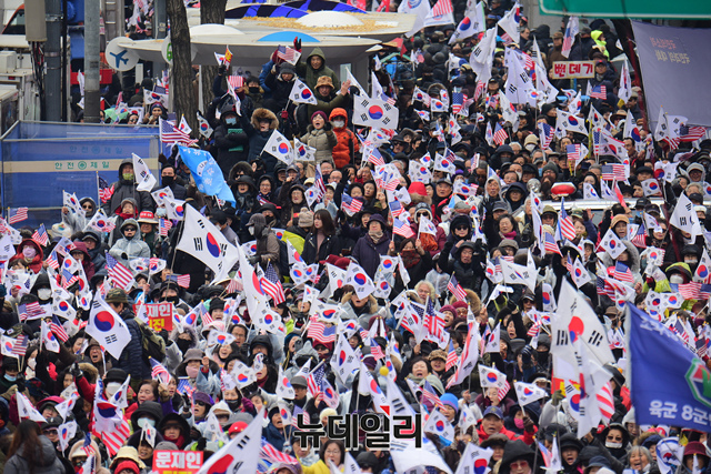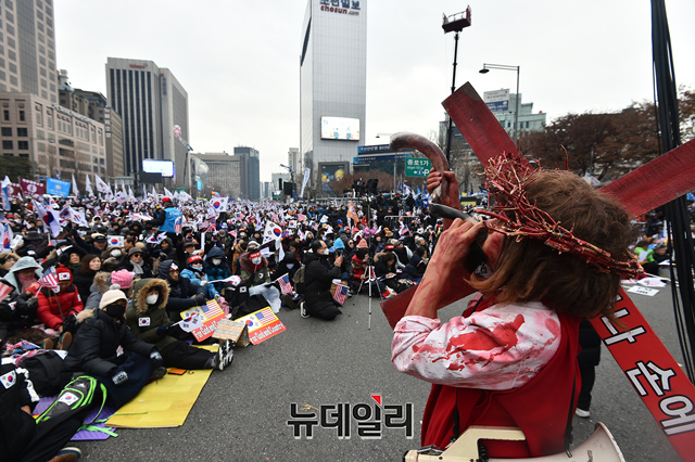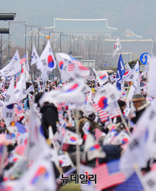 [포토] 태극기 흔들며 문재인 대통령 규탄하는 자유시민들