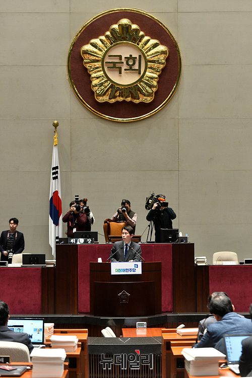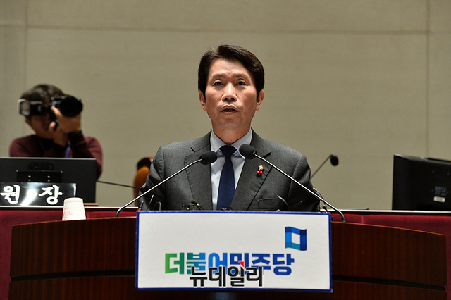 이인영 더불어민주당 원내대표가 10일 오전 국회에서 열린 의원총회에서 모두발언을 하고 있다.