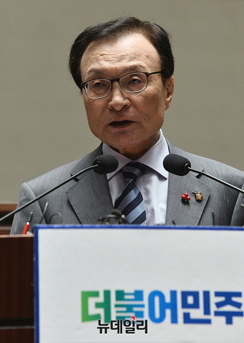 이해찬 더불어민주당 대표가 10일 오전 국회에서 열린 의원총회에서 모두발언을 하고 있다.
