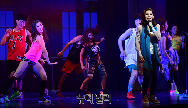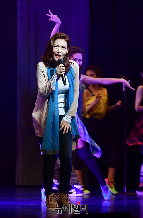 뮤지컬 배우 김선영이 10일 오후 서울 강남구 LG아트센터에서 열린 뮤지컬 '보디가드' 프레스콜에서 하이라이트 장면을 시연하고 있다.