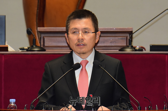 황교안 자유한국당 대표가 11일 오전 국회에서 열린 의원총회에 참석해 '4+1예산' 강행 관련 발언을 하고 있다.