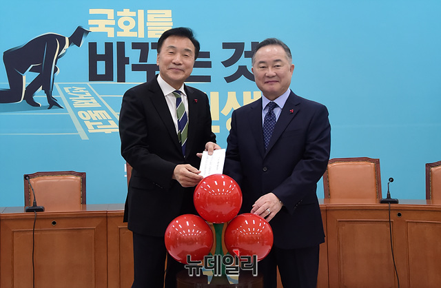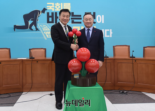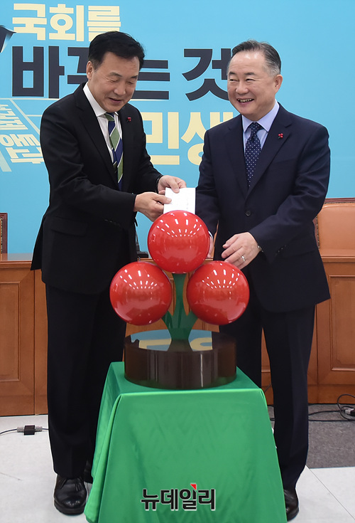 손학규 바른미래당 대표와 예종석 사회복지공동모금회 회장이 13일 오전 국회에서 열린 '희망 2020 나눔캠페인 사랑의 열매 전달식'에서 기념촬영을 하고 있다.