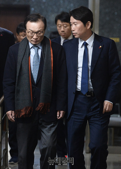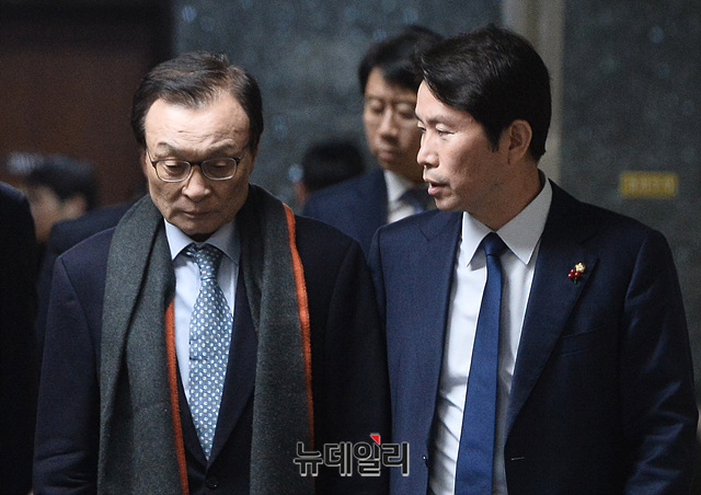 [포토] 민주당 의총 입장하는 '이해찬-이인영'