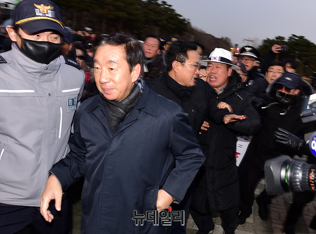 [포토] 시민들에 항의 받는 김성태 한국당 의원