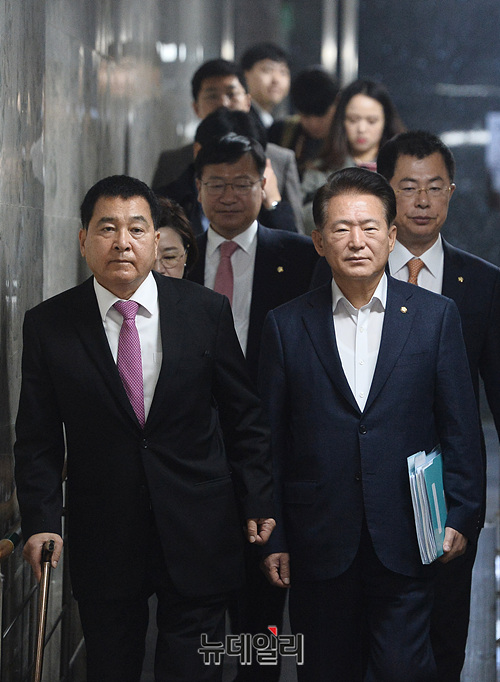 [포토] 한국당 원내대책회의 입장하는 지도부