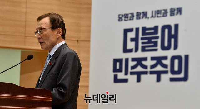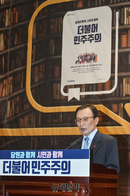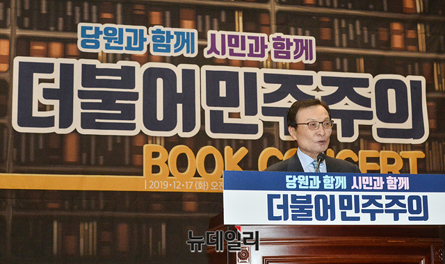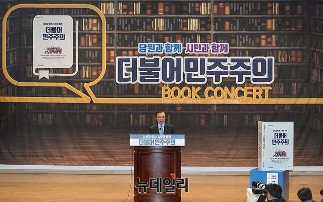 이해찬 더불어민주당 대표가 17일 오전 국회 의원회관에서 열린 민주당 당원교과서 출판기념회에 참석해 인사말을 하고 있다.