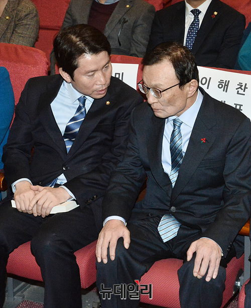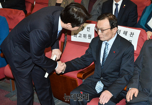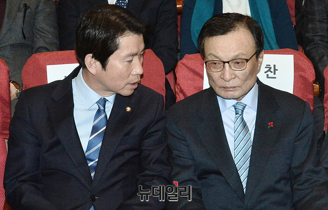[포토] 민주당 당원교과서 출판기념회, 대화나누는 '이해찬-이인영'