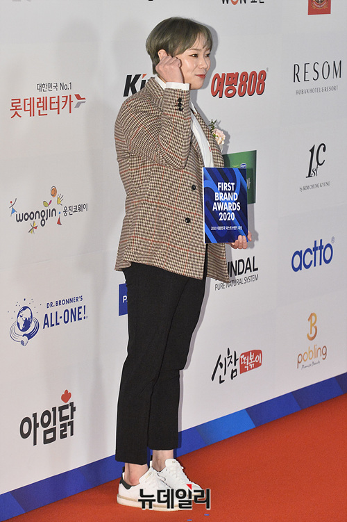 유튜버 입짧은햇님이 17일 오후 서울 여의도 콘래드호텔에서 열린 '2020 대한민국 퍼스트브랜드 대상 시상식(FIRST BRAND AWARDS 2020)' 레드카펫 행사에서 포토타임을 갖고 있다.