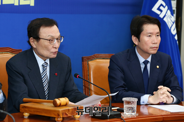 이해찬 더불어민주당 대표가 18일 오전 국회에서 열린 최고위원회의에 참석해 모두발언을 하고 있다.