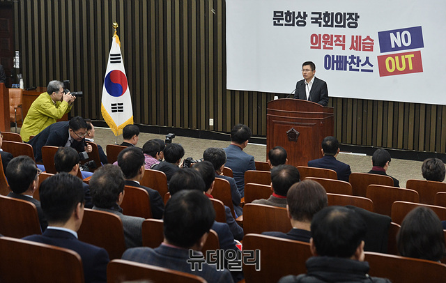 황교안 자유한국당 대표가 18일 오후 국회에서 열린 의원총회에서 모두발언을 하고 있다.