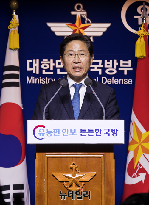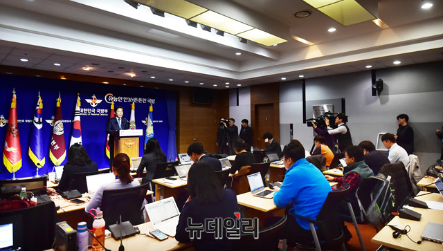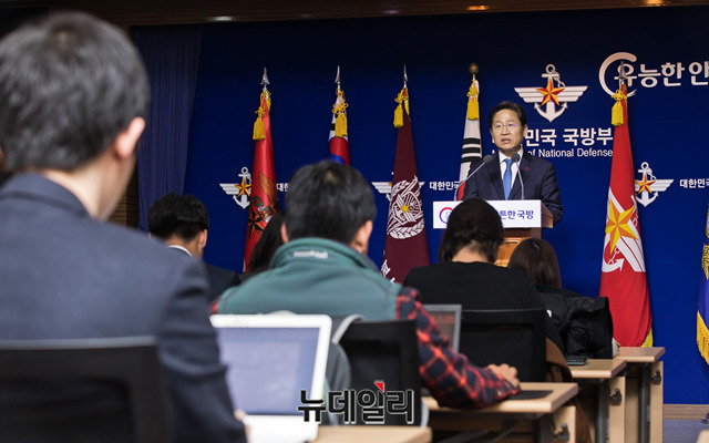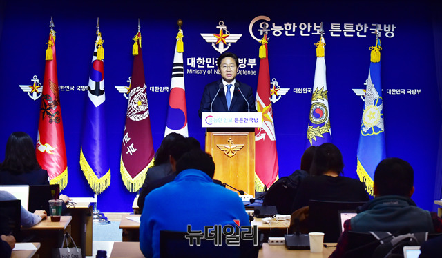 임찬우 국무조정실 주한 미군기지 이전 지원단장이 11일 오후 서울 용산구 국방부에서 원주·부평·동두천 등 4개 미군기지 폐쇄 및 용산기지 반환 협의와 관련해 브리핑을 갖고 있다. (사진=주한미국대사관)