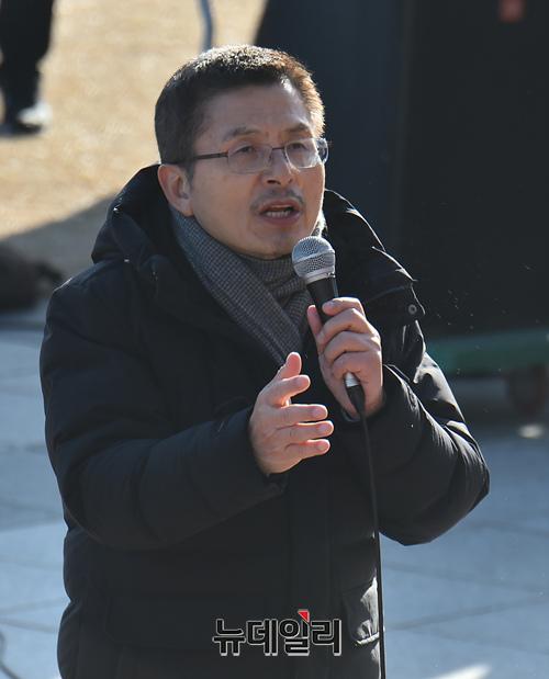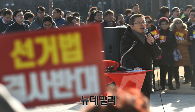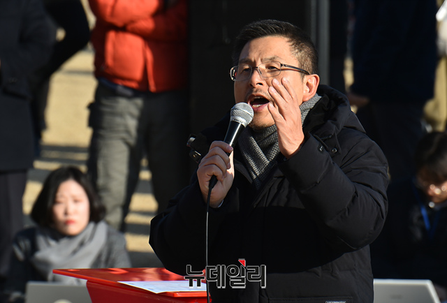 황교안 자유한국당 대표가 20일 오전 국회에서 열린 공수처법·선거법 날치기 저지 규탄대회에서 발언을 하고 있다.